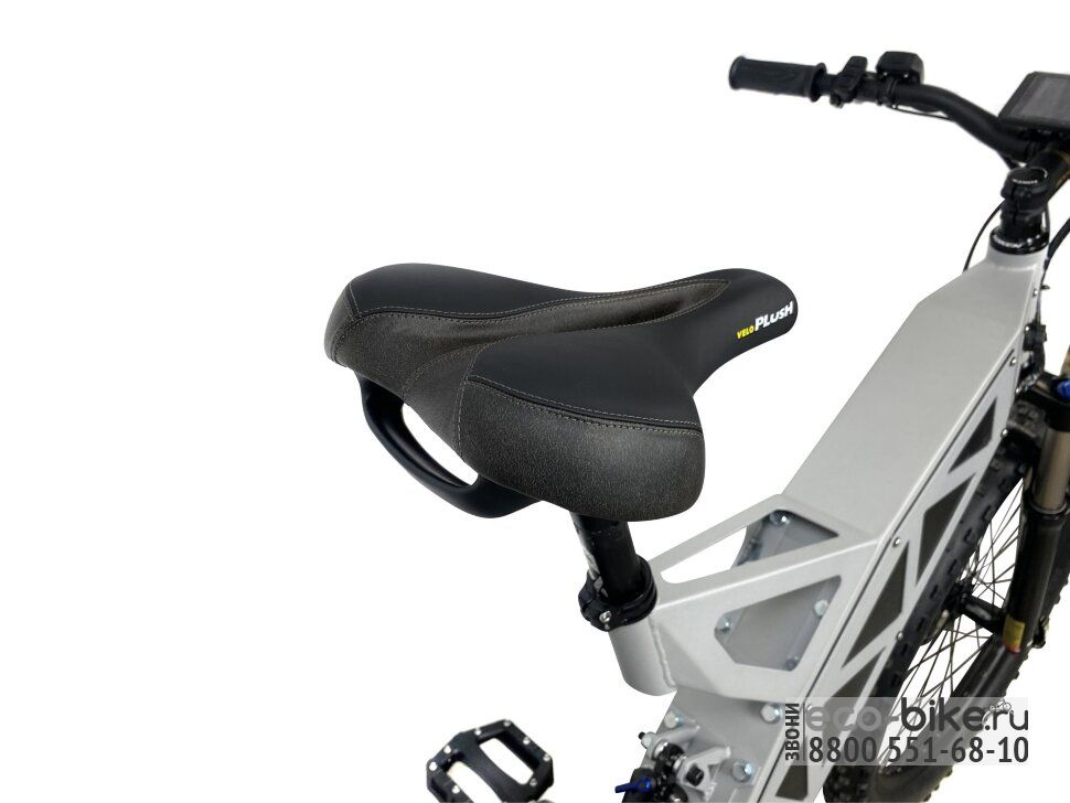 - оснащен 1500 ваттным мотором, разгоняющий велосипед до 60 км/ч;